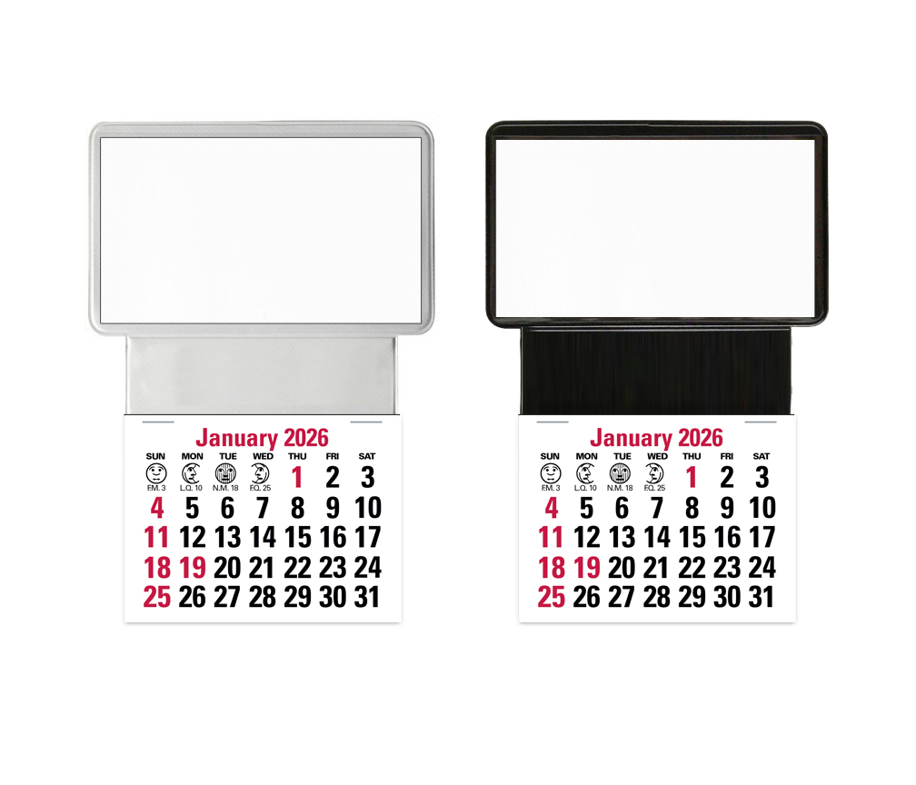 Featuring a clear pocket to insert your business card, this popular Press-n-Stick™ Calendar is a nifty promotion that's easy to share with your entire office or sales team. Available in black or white vinyl, this imprinted version offers a center ad area measuring 2.625"W x .625"H (up to 3 lines). Proudly made in the USA. Press-n-Stick™ Calendars feature a special adhesive that allows the vinyl to be stuck on almost any surface and then easily removed with no residue!