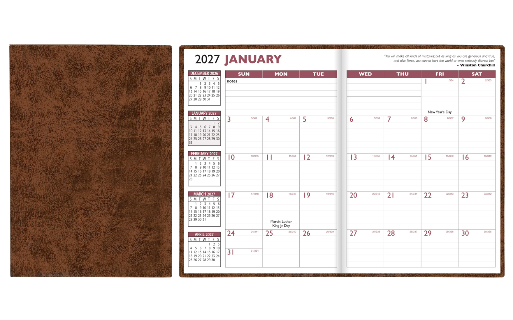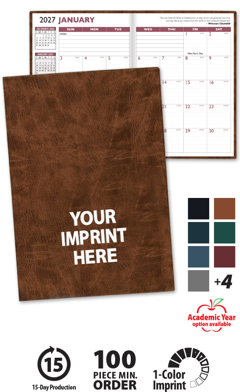 NOTE: The planner year can be added to the front cover but must fit within the product's available imprint area.