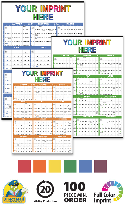 Organizing your schedule is a breeze with a calendar that shows the entire year at once. This customizable jumbo size full year view calendar is designed for easy planning, making it perfect for offices, job sites, and scheduling needs. Personalize this oversized calendar with your choice of 6-standard accent colors!