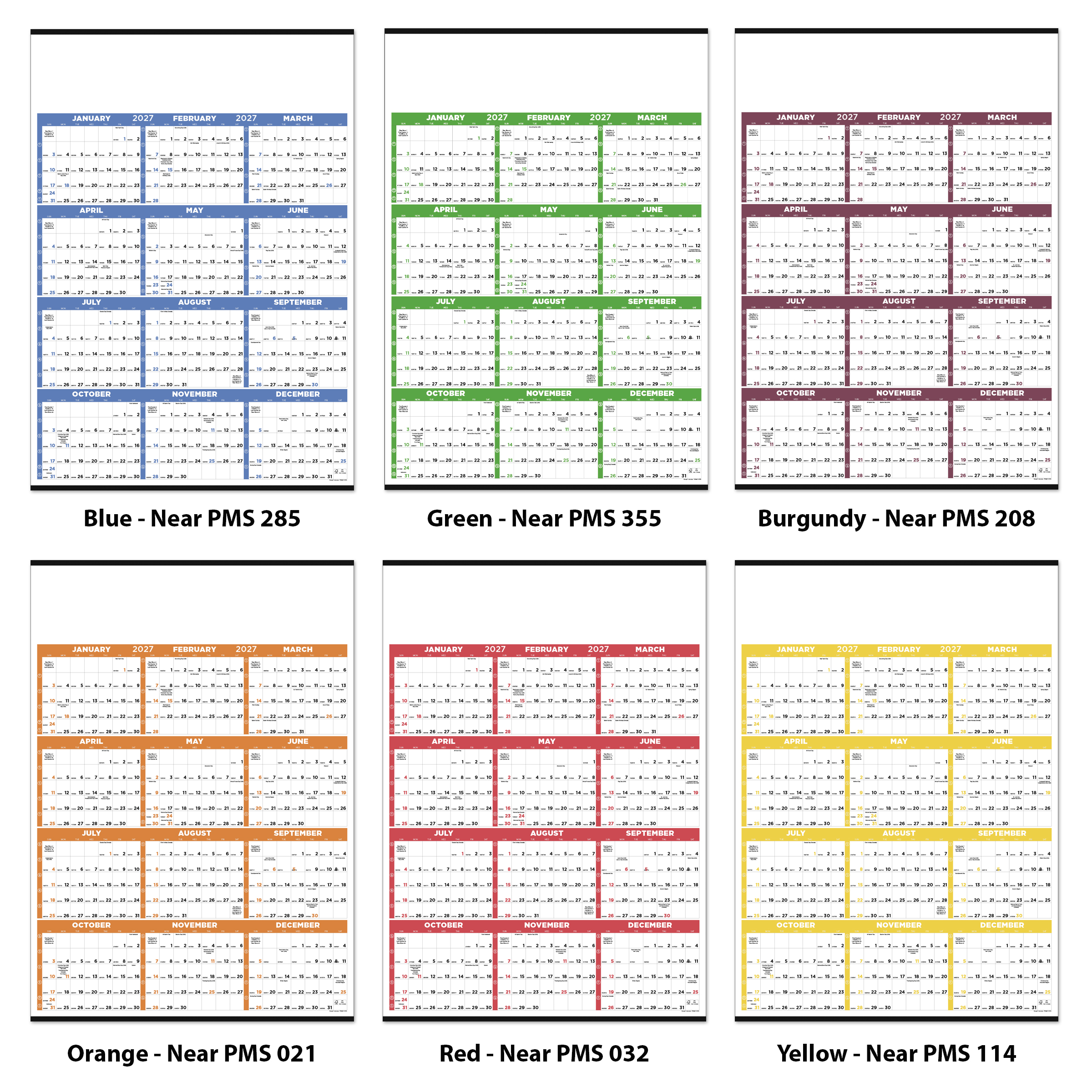 Accent Color Options: Blue (Near PMS 285), Green (Near PMS 355), Maroon (Near PMS 208), Orange (Near PMS 021), Red (Near PMS 032), Yellow (Near PMS 114)