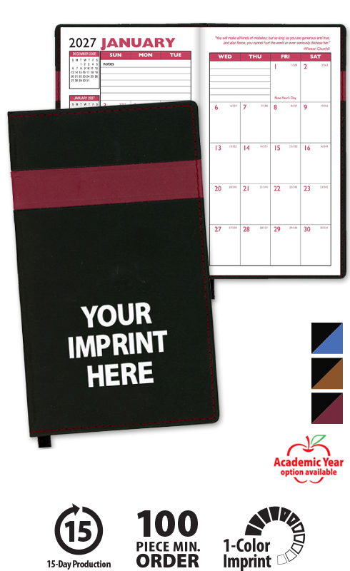 NOTE: The planner year can be added to the front cover but must fit within the product's available imprint area.