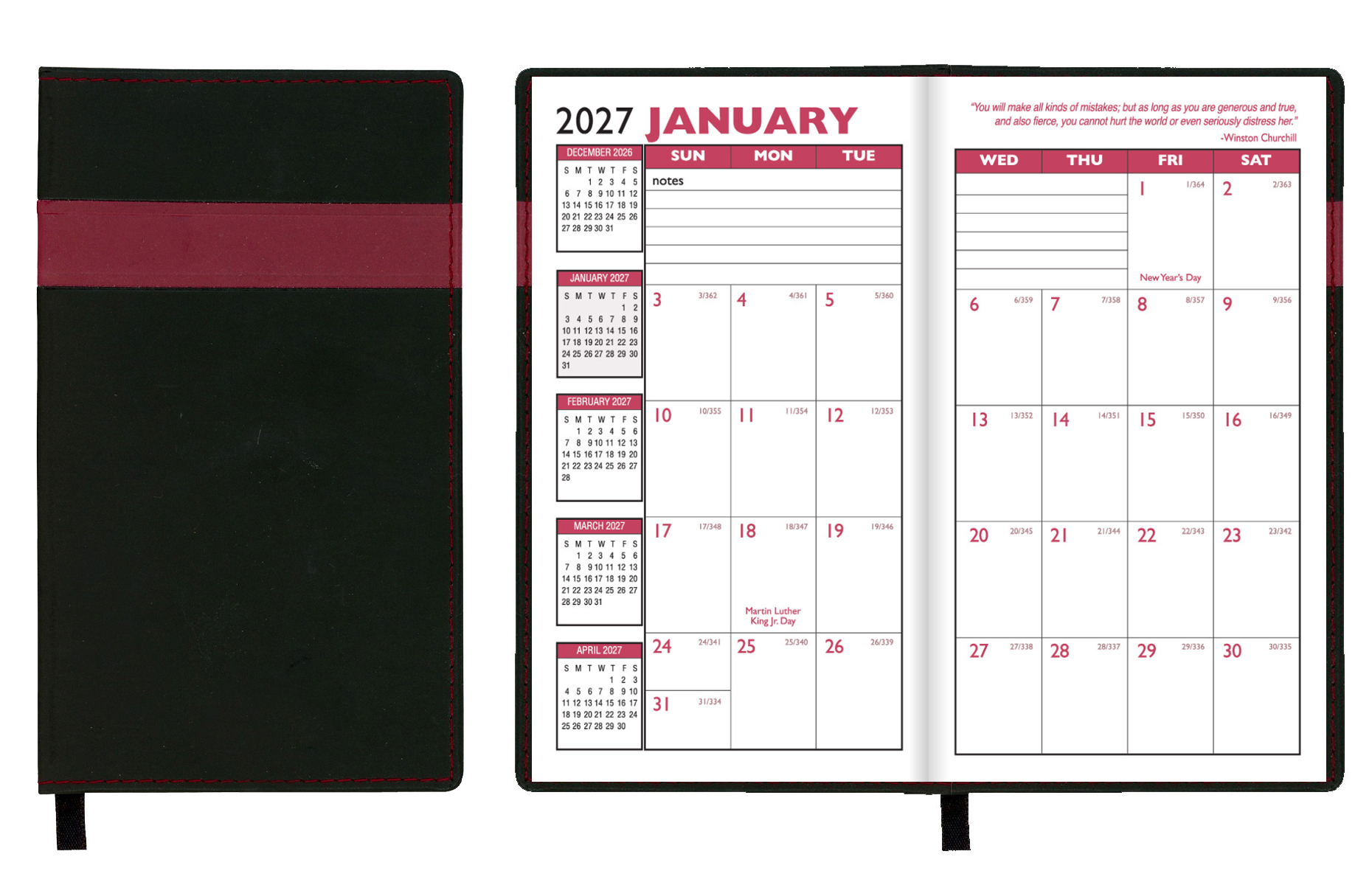 β’ Built-in ribbon page marker and select standard (DecβJan) or academic (JulβAug) format when ordering