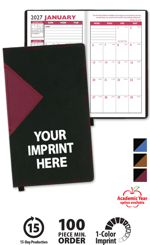 NOTE: The planner year can be added to the front cover but must fit within the product's available imprint area.