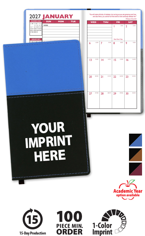 NOTE: The planner year can be added to the front cover but must fit within the product's available imprint area.
