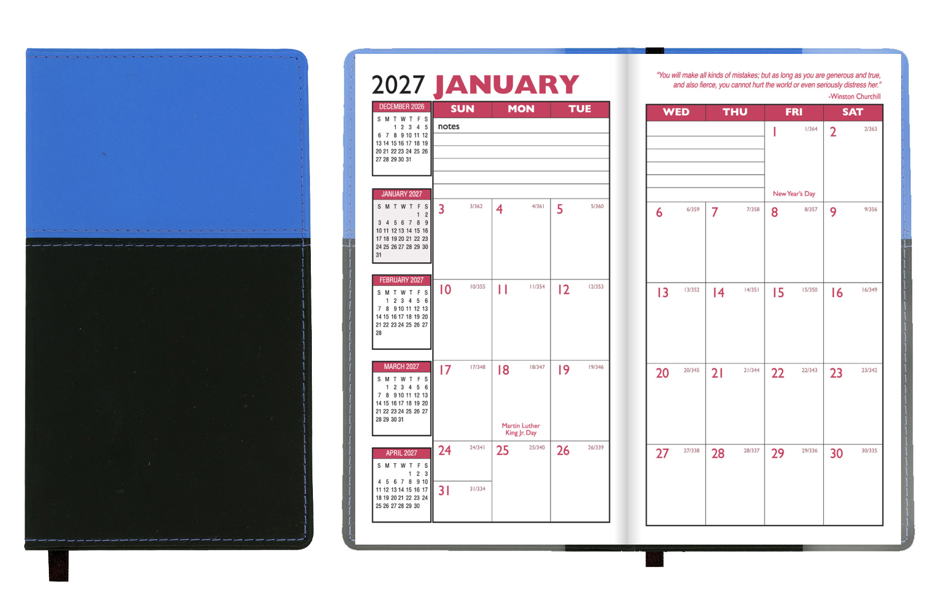 β’ Built-in ribbon page marker and select standard (DecβJan) or academic (JulβAug) format when ordering