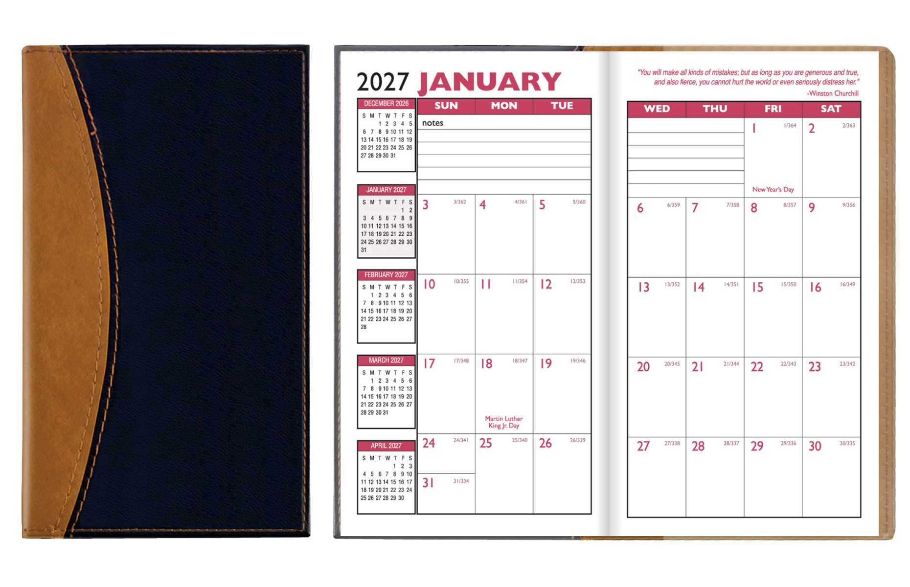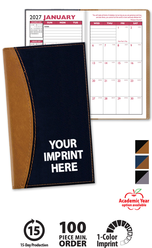 NOTE: The planner year can be added to the front cover but must fit within the product's available imprint area.