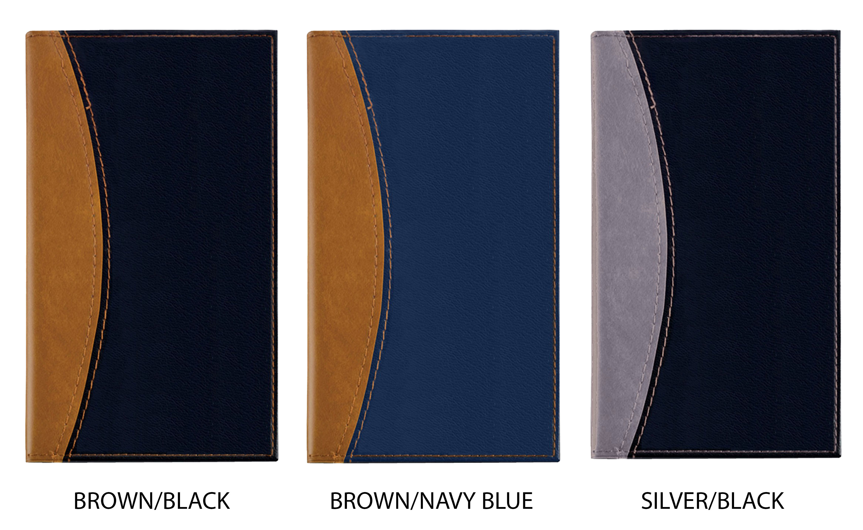 Stay organized throughout the year with this stylish 14-month monthly pocket planner featuring a modern two-tone vinyl jacket cover and distinctive curved accent design. The Normandy Series planner offers a refined, contemporary look that makes it an excellent promotional planner for customers, professionals, and everyday scheduling.