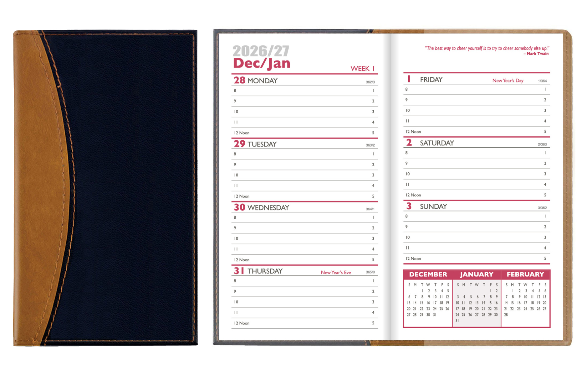 NOTE: The planner year can be added to the front cover but must fit within the product's available imprint area.