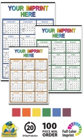 This high-quality custom printed laminated full year view calendar will proudly display your personalized promotional message for the entire year!