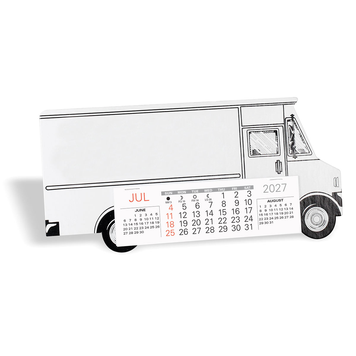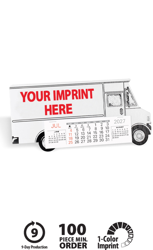 This high-quality custom printed Box Van Desk Calendar will proudly display your personalized promotional message for the entire year!