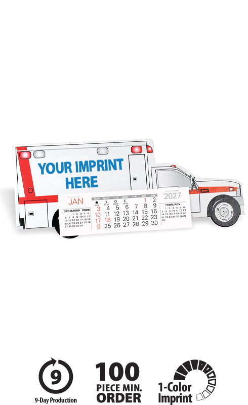 This high-quality custom printed Emergency Squad Ambulance Desk Calendar will proudly display your personalized promotional message for the entire year!